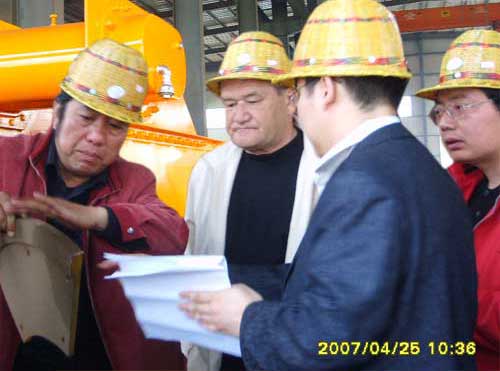 | 公司領導與客戶商討技術問題 | 公司領導與國外客人進行技術交流 | 車間一隅 |
