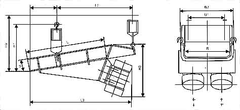 粉體振動(dòng)給料機(jī)給料過程是利用特制的振動(dòng)電機(jī)或兩臺(tái)電動(dòng)機(jī)帶動(dòng)激振器驅(qū)動(dòng)給料槽沿傾斜方向作周期直線往復(fù)振動(dòng)來實(shí)現(xiàn),當(dāng)給料槽振動(dòng)的加速度垂直分量大于重力加速度時(shí),槽中的料被拋起,并按照拋物線的軌跡向前跳躍運(yùn)動(dòng),拋起和下落在瞬間完成,由于激振源的連續(xù)激振,給料槽連續(xù)振動(dòng),槽中的煤連續(xù)向前跳躍,以達(dá)到給料的目的。